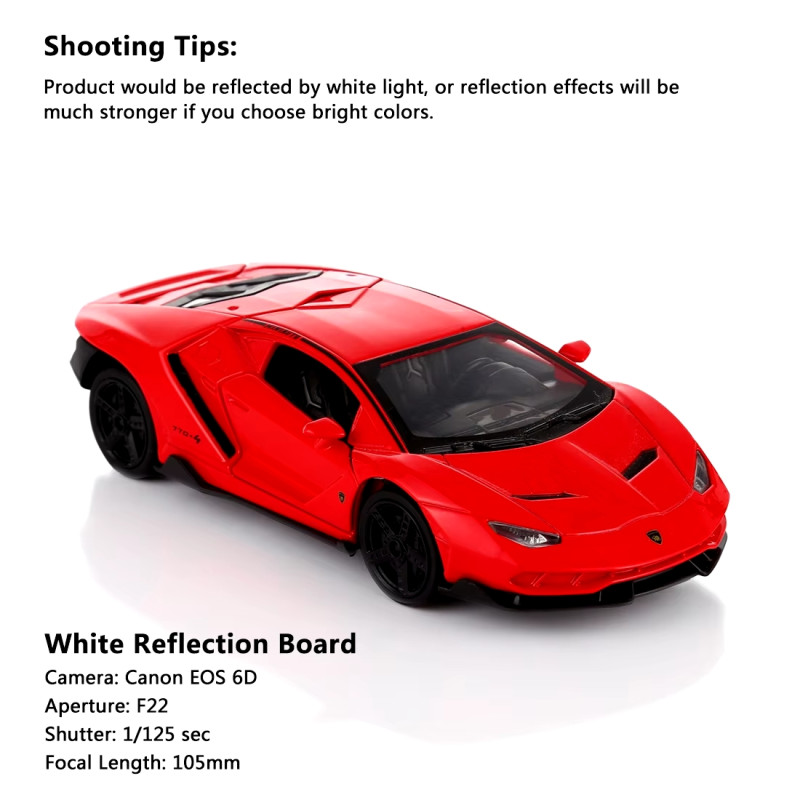 Os cantos e as bordas da placa refletora fotográfica são arredondados para que não haja risco de lesões. A placa refletora tem uma forte capacidade de refletir a luz, permitindo ao fotógrafo capturar imagens de muitos pequenos objetos refletidos na luz.