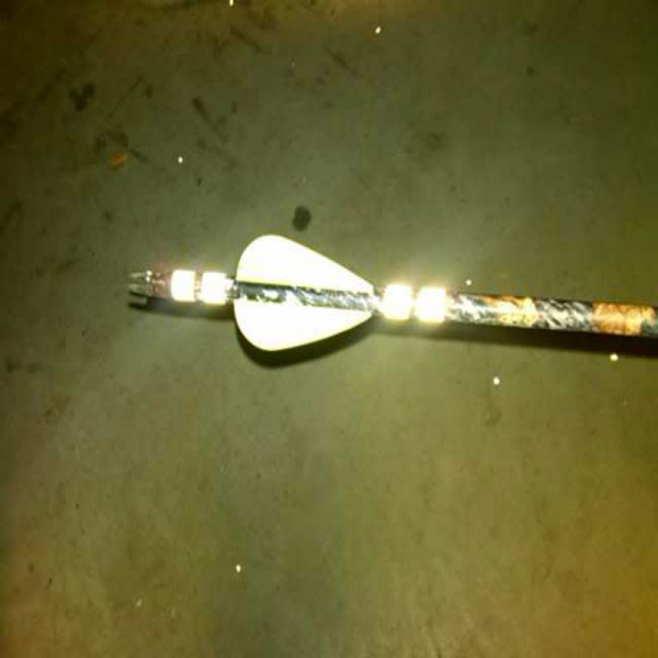 Este adesivo ,concebido para ser colocado nas flechas com fim de aumentar a segurança, faz que as flechas sejam mais fáceis de encontrar, mesmo no escuro, como é suficiente iluminare a area com uma lanterna e a flecha será imediatamente visível. A fita pode ser cortada segundo as exigencias do cliente para poder o adaptar a todos os tipos de flechas.