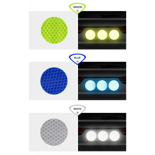 Os discos reflexivos também podem ser colocados nas portas e na traseira de veículos e muito mais como objetos colocados do lado de fora.