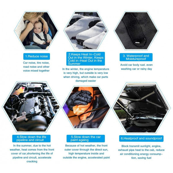 - Uma vez instalado, o produto melhorará a qualidade de condução do veículo, reduzindo o ruído do motor, o zumbido dos pneus, o ruído da estrada, o ruído do vento e melhorará significativamente o requinte do veículo e a qualidade do som.